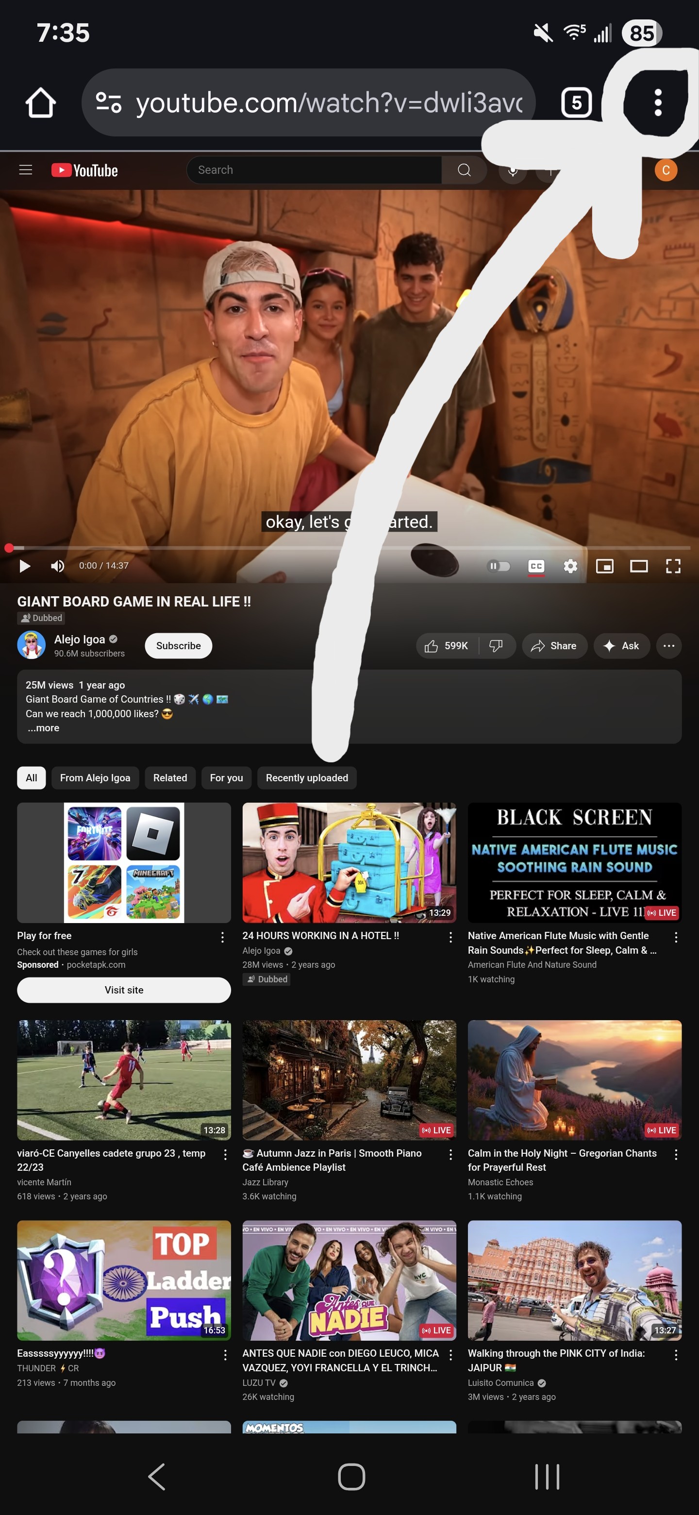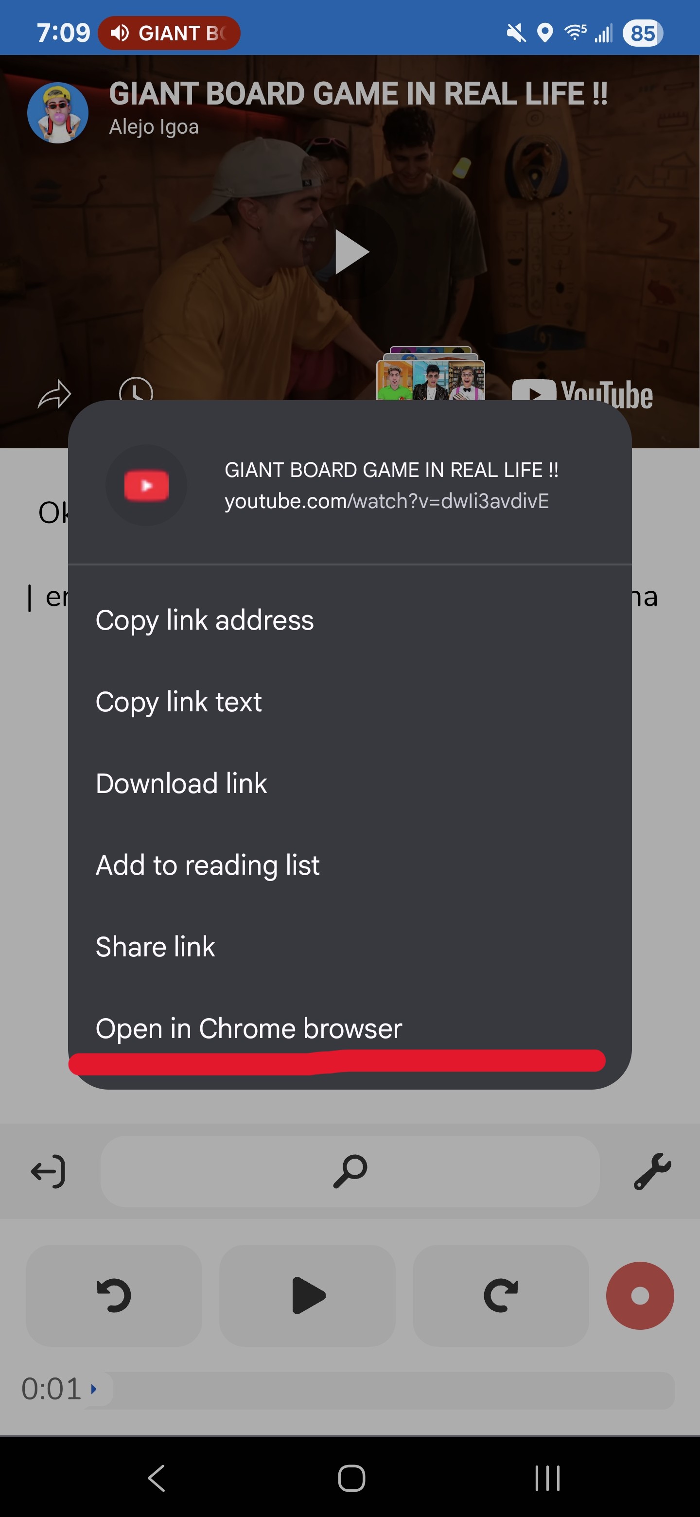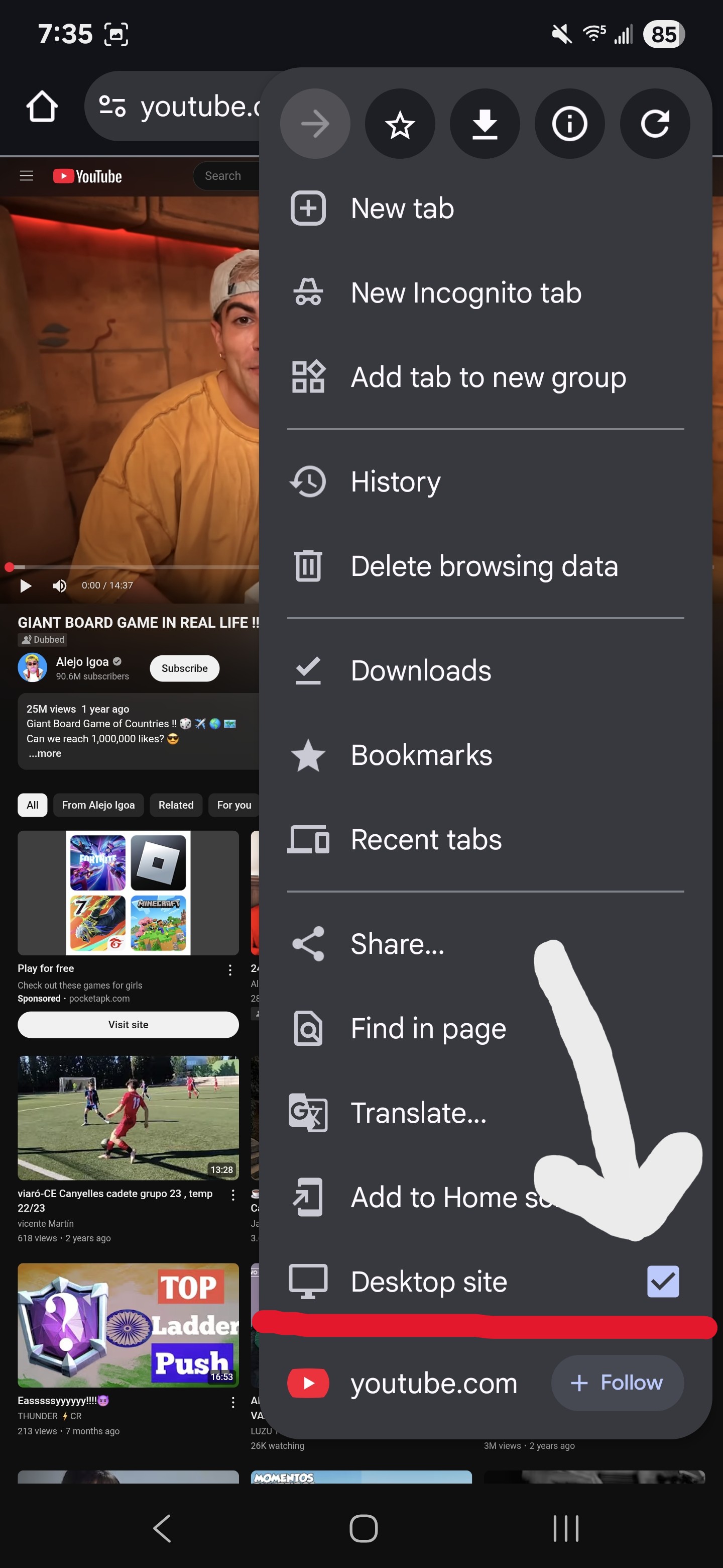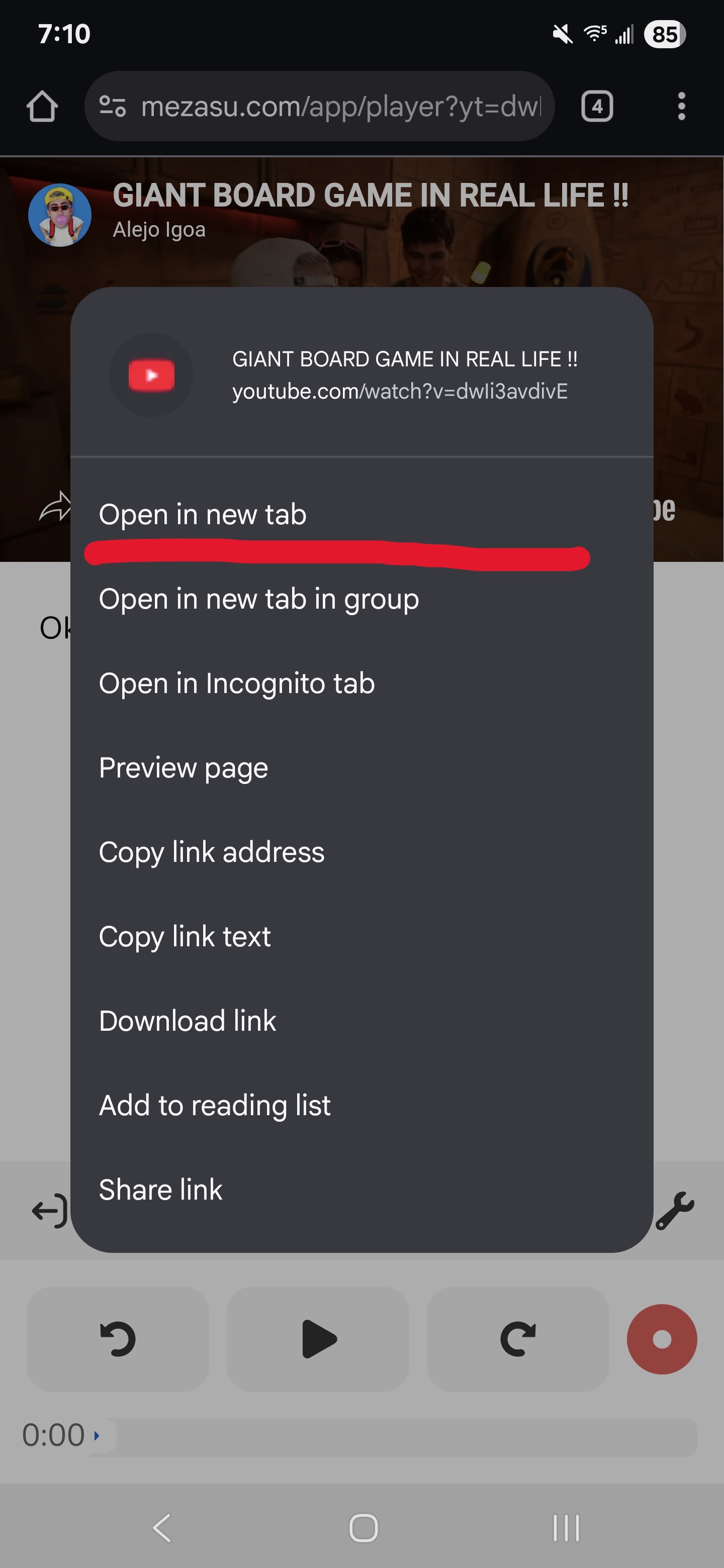 Note: It is important to open it in a new tab. If you simply click the title on mobile, it will open the YouTube app. The settings in the YouTube app are NOT the same settings in the browser.