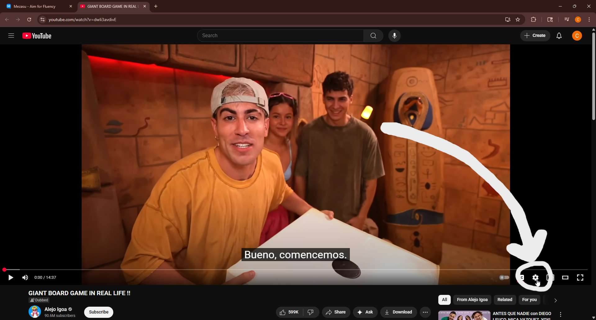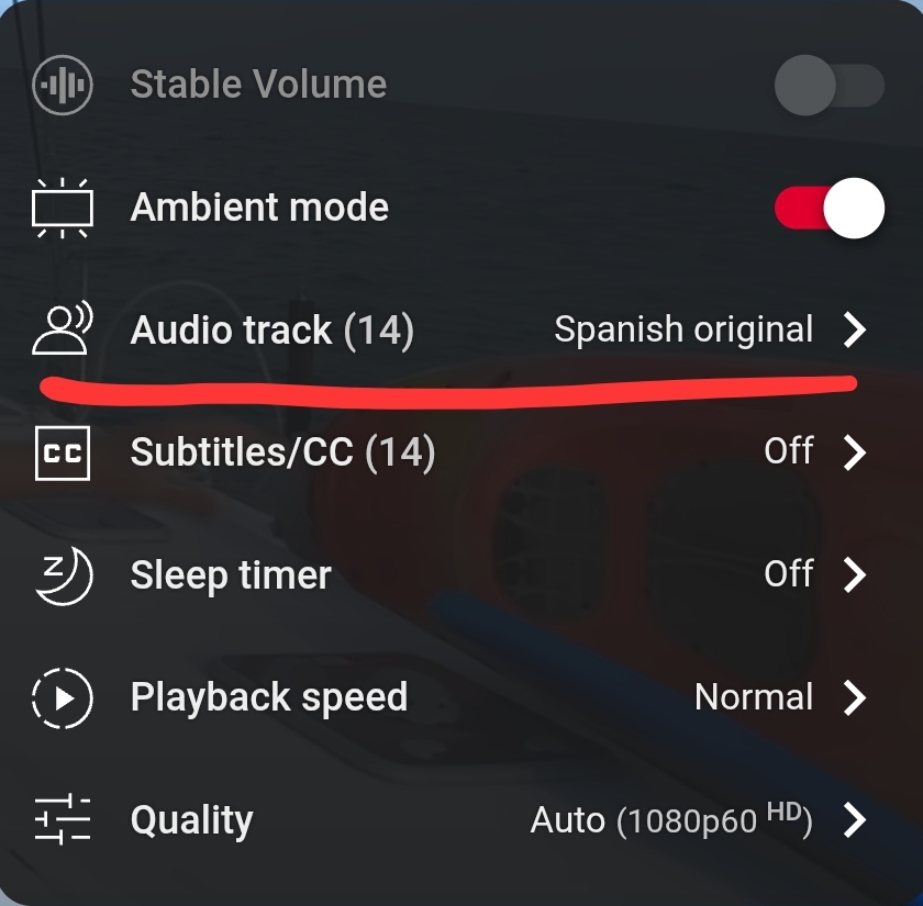 Opening “Audio Track” in the settings will let you see all of the available languages available for this video.